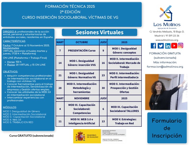 FORMACIÓN TÉCNICA 2025 2ª EDICIÓN CURSO INSERCIÓN SOCIOLABORAL VÍCTIMAS DE VG