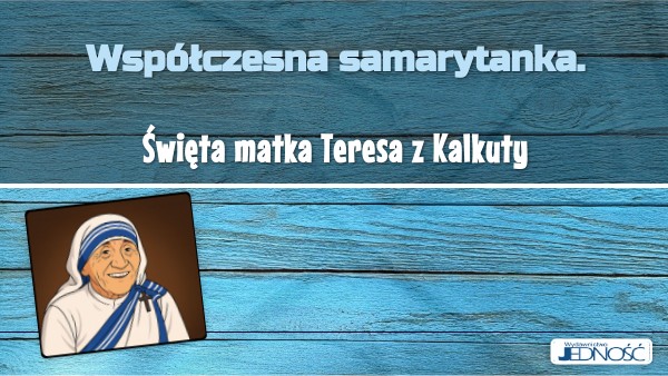 Jak Samarytanin z przypowieści zobaczył człowieka potrzebującego pomocy, tak matka Teresa dostrzegała problemy ludzi XX w., których nie widzieli współcześnie żyjący. Samarytanin zorganizował pomoc dla rannego, nie szczędząc przy tym czasu, trudu i pieniędzy. Również matka Teresa starała się zaradzić ludzkiej niedoli. Obecnie Zgromadzenie Sióstr Misjonarek Miłości prowadzi na całym świecie sierocińce, hospicja dla chorych na AIDS, centra pomocy charytatywnej, domy pomocy dla uchodźców, niewidomych, niepełnosprawnych, starców, alkoholików, ubogich, bezdomnych, trędowatych, ofiar powodzi, epidemii i głodu. Także my mamy chrześcijański obowiązek zająć się potrzebującymi pomocy.