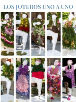 Las flores elegidas para la indumentaria de los joteros son, básicamente, limonium, hortensias, rosas, brum y amarantus, junto con espigas y cardos.