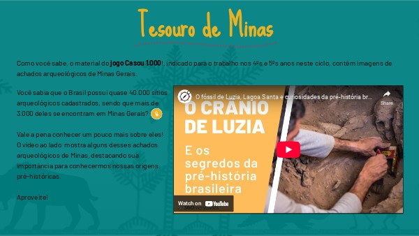Como você sabe, o material do jogo Casou 1.000!, indicado para o trabalho nos 4ºs e 5ºs anos neste ciclo, contêm imagens de achados arqueológicos de Minas Gerais.