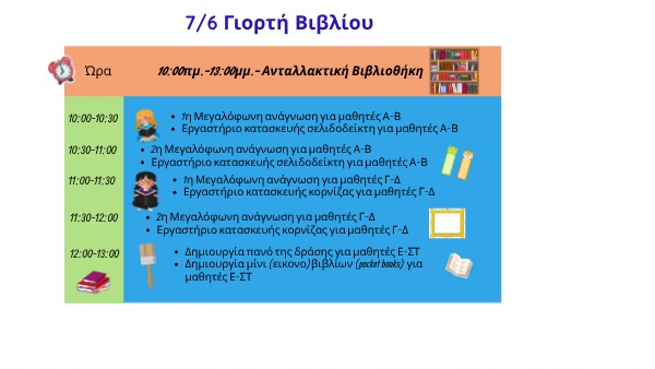 10:00πμ.-13:00μμ.- Ανταλλακτική Βιβλιοθήκη