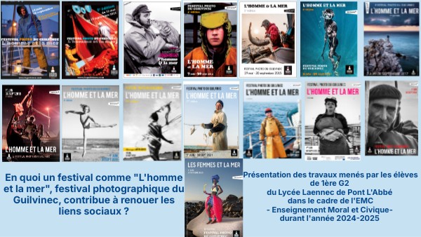 C'est à cette question qu'ont répondu, chaque groupe à sa manière, les élèves de 1ère G2 dans le cadre de l'EMC durant l'année scolaire 2024-2025. Ce projet s'inscrit dans le cadre de l'appel à projet académique "ROUTES MARITIMES ET CITOYENNES". Comment nos « je » variés et disparates se combinent en Nous, composite sans doute, discordant, chamailleur, dissonant, mais dynamique et inventif, pour décider ensemble du chemin qu’il nous sied de tracer. nous dit Christiane Taubira dans Nous habitons la terre. A travers l'exemple du festival photographique "L'homme et la mer" du Guilvinec, les élèves de 1ère G2 ont réfléchi à ce que sont les liens sociaux, fragilisés dans notre monde contemporain et à la manière dont nous pouvons contribuer à les renouer. Merci à l'association du Festival "L'homme et la mer" d'être venue à la rencontre des jeunes pour leur expliquer le fonctionnement de leur association. Merci aux élèves de 1ère G2 pour leur implication dans ce projet, la richesse de leur réflexion. Merci à eux de nous avoir montré comment ce festival continue de rassembler et d’inspirer, faisant du Guilvinec un lieu où l’homme, la femme et la mer se retrouvent pour bâtir un avenir commun pour reprendre la conclusion d'un groupe d'élèves. Armelle Le Gall