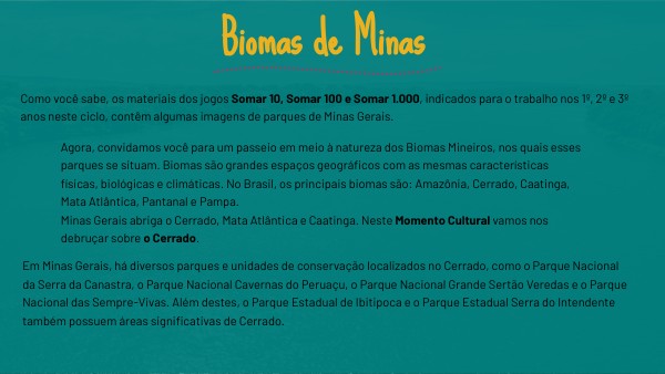 Como você sabe, os materiais dos jogos Somar 10, Somar 100 e Somar 1.000, indicados para o trabalho nos 1º, 2º e 3º anos neste ciclo, contêm algumas imagens de parques de Minas Gerais.