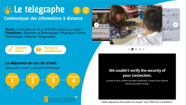 Durée : 1h05. Déroulé : Les élèves conçoivent et construisent un télégraphe électrique simplifié.