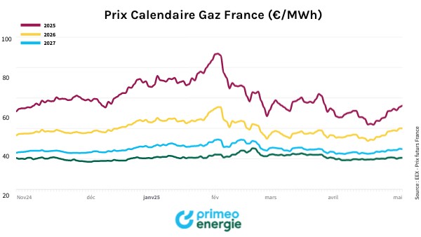 Prix Calendaire Gaz France (€/MWh)