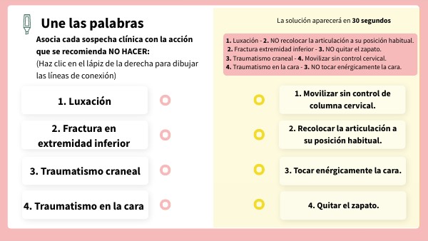 Asocia cada sospecha clínica con la acción que se recomienda NO HACER:(Haz clic en el lápiz de la derecha para dibujar las líneas de conexión)