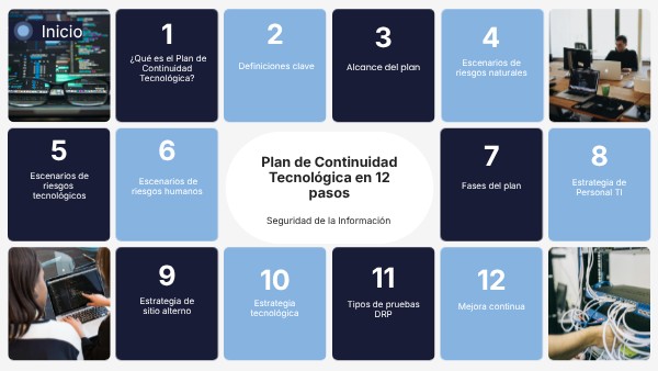 Llegaste al Plan de Continuidad Tecnológica, queremos que conozcas el paso a paso para asegurar la operatividad en situaciones críticas, minimizando el impacto en los procesos y los sistemas de información.