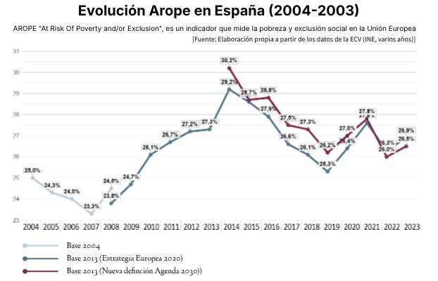AROPE "At Risk Of Poverty and/or Exclusion", es un indicador que mide la pobreza y exclusión social en la Unión Europea