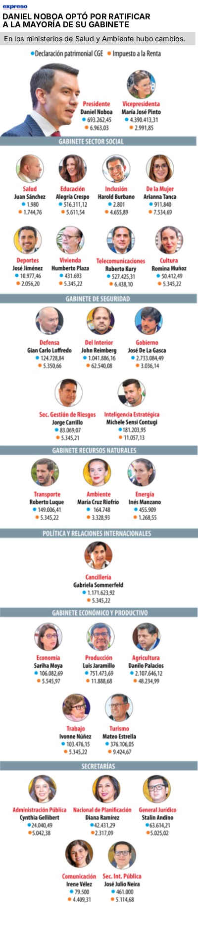 DANIEL NOBOA OPTÓ POR RATIFICAR A LA MAYORÍA DE SU GABINETE