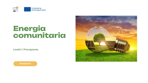 - Capire cos'è l'energia comunitaria e perché è importanteCome l'energia comunitaria si collega alla vita di tutti i giorniIdentificare esempi semplici e concreti di sistemi energetici di proprietà della comunitàComprendere i componenti chiave di un progetto energetico comunitario