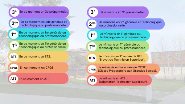 Je m'inscris en 1re générale ou technologique ou professionnelle.