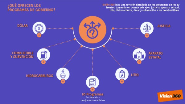 Visión 360 hizo una revisión detallada de los programas de los 10 frentes, tomando en cuenta seis ejes: justicia, aparato estatal, litio, hidrocarburos, dólar y subvención a los combustibles.