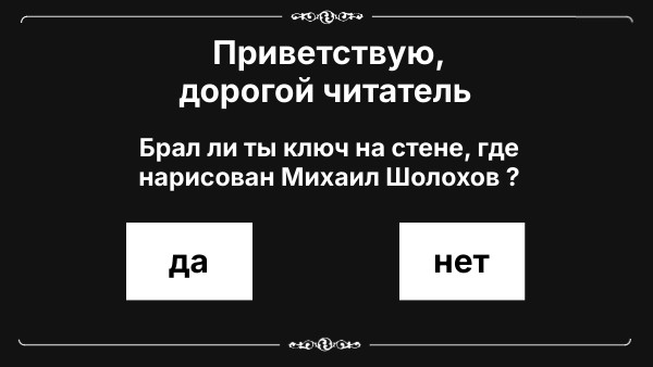 Брал ли ты ключ на стене, где нарисован Михаил Шолохов ?