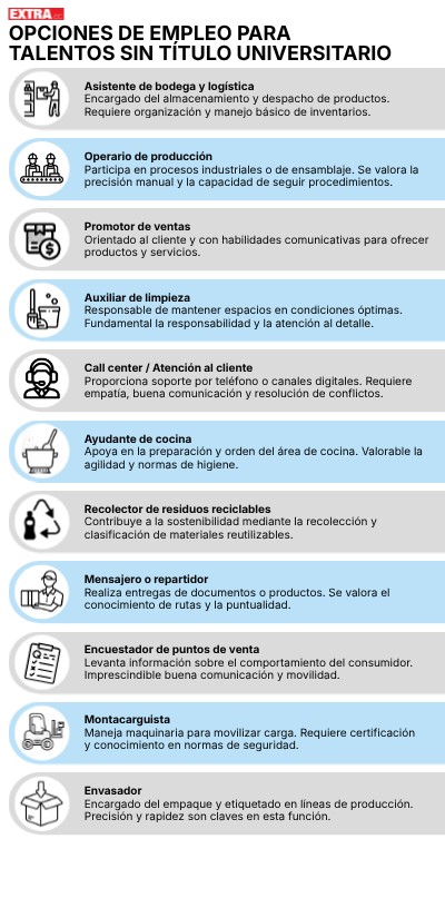 Mensajero o repartidor Realiza entregas de documentos o productos. Se valora el conocimiento de rutas y la puntualidad.