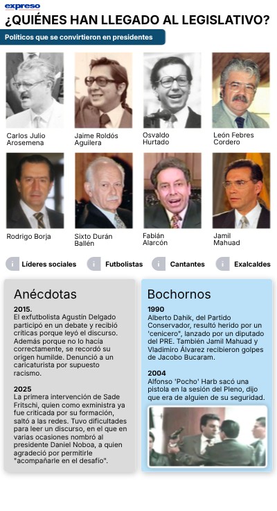 2015. El exfutbolista Agustín Delgado participó en un debate y recibió críticas porque leyó el discurso. Además porque no lo hacía correctamente, se recordó su origen humilde. Denunció a un caricaturista por supuesto racismo. 2025 La primera intervención de Sade Fritschi, quien como exministra ya fue criticada por su formación, saltó a las redes. Tuvo dificultades para leer un discurso, en el que en varias ocasiones nombró al presidente Daniel Noboa, a quien agradeció por permitirle "acompañarle en el desafío".
