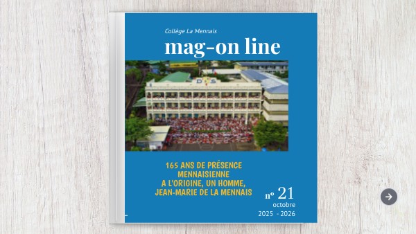 165 ans d'existence, c'est le nombre d'années d'existence du collège-lycée La Mennais. Et ce n'est pas rien. C'est l'un des plus anciens établissements scolaires de Tahiti. L'un des plus renommés aussi. A l'origine , un homme d'exception. Un breton, de foi catholique, qui a consacré sa vie à la congrégation et aux écoles qu'il a créées. Il n'aura pas vu l'établissement scolaire de Tahiti, ni même suivi son évolution. En 1860, l'année d'arrivée des quatre Frères de la congrégation mennaisienne, Jean-Marie de La Mennais rend son dernier souffle. Ce vingt-et-unième numéro du Mag on line rend hommage au fondateur. Les élèves de 4èmeG ont co-écrit avec leur professeure d'histoire quelques articles relatant le parcours de Jean-marie de la Mennais et la vivacité de son oeuvre qui perdure à travers le monde. Avant, ils sont allés à la rencontre des élèves, des frères et de quelques professeurs pour des petits interviews. BONNE LECTURE