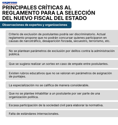 Principales críticas al reglamento para la selección del nuevo Fiscal del Estado