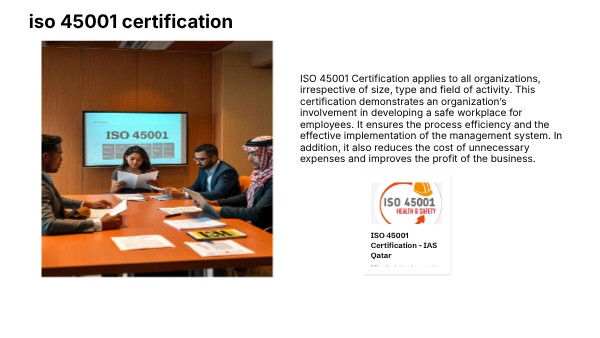 ISO 45001 Certification applies to all organizations, irrespective of size, type and field of activity. This certification demonstrates an organization’s involvement in developing a safe workplace for employees. It ensures the process efficiency and the effective implementation of the management system. In addition, it also reduces the cost of unnecessary expenses and improves the profit of the business.