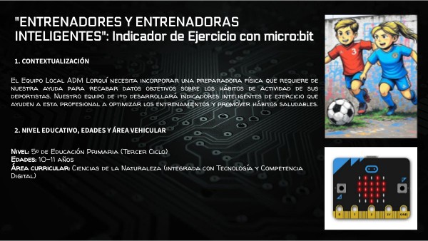 ¿Sabías que el Equipo Local ADM Lorquí está buscando incorporar una preparadora física profesional? Blanca Romero, experta en ciencias del deporte y tecnología aplicada al entrenamiento, necesita datos objetivos sobre los hábitos de actividad de sus deportistas para optimizar sus programas de entrenamiento. Nuestro alumnado se convertirá en un equipo de desarrolladores junior que colaborará con Blanca para crear indicadores inteligentes de ejercicio usando micro:bit. Estos dispositivos deberán detectar automáticamente cuándo una persona está activa o en reposo, ayudando a la preparadora física a tomar decisiones informadas sobre los entrenamientos. el éxito de blanca depende de nuestros productos. La actividad combina programación por bloques, entrenamientoML, diseño de producto y trabajo en equipo, mientras visibiliza el importante papel de las mujeres profesionales en campos tradicionalmente masculinizados como la tecnología deportiva y la preparación física. A través de una narrativa motivadora y roles cooperativos rotativos, el alumnado desarrollará tanto competencias técnicas como valores de igualdad, descubriendo que la tecnología puede ser una herramienta poderosa para mejorar la salud y el bienestar de las personas.