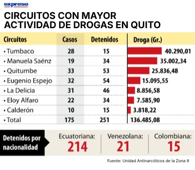 CIRCUITOS CON MAYOR ACTIVIDAD DE DROGAS EN QUITO