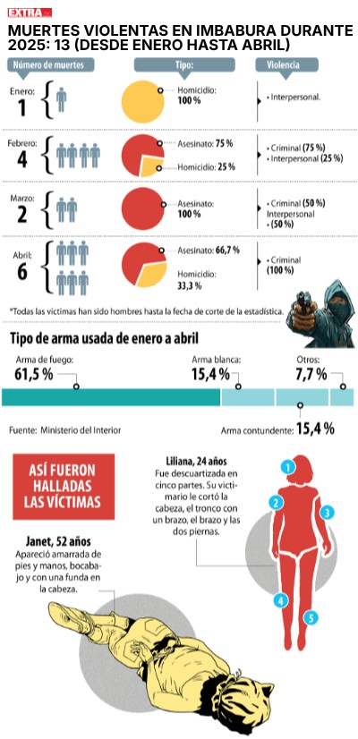 MUERTES VIOLENTAS EN IMBABURA DURANTE 2025: 13 (DESDE ENERO HASTA ABRIL)