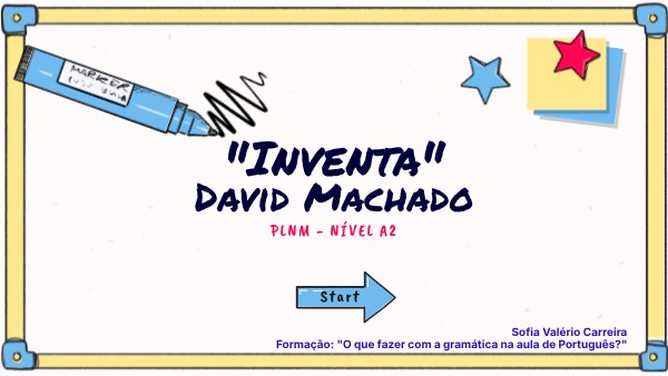 Em vez de aí estares sem fazer nada, Inventa uma história nunca contada. Com ogres e naves espaciais, Com super-heróis que desobedecem aos pais. Inventa um desenho de tudo ao contrário: Um leão medroso, um cão num aquário. Inventa a canção que ninguém cantou, Inventa um passado que não passou. Inventa uma letra, um grito, uma dança. Inventa um adulto que ainda é criança. Inventa a palavra mais longa de sempre. Nem que seja para irritar toda a gente. Inventa o fim do grande universo E uma rima que sirva melhor neste verso. Se inventares qualquer coisa já é quanto baste. Só não deixes o mundo como o encontraste.