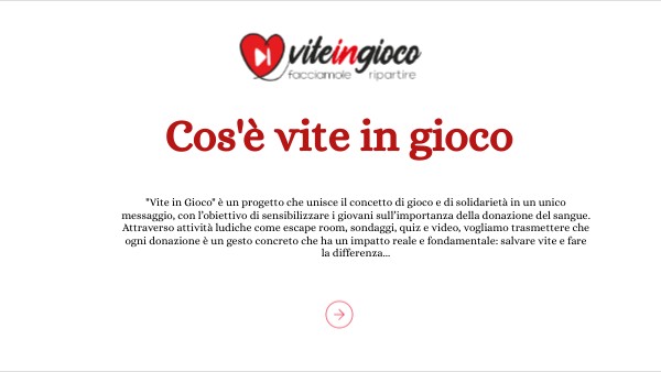 "Vite in Gioco" è un progetto che unisce il concetto di gioco e di solidarietà in un unico messaggio, con l’obiettivo di sensibilizzare i giovani sull’importanza della donazione del sangue. Attraverso attività ludiche come escape room, sondaggi, quiz e video, vogliamo trasmettere che ogni donazione è un gesto concreto che ha un impatto reale e fondamentale: salvare vite e fare la differenza...