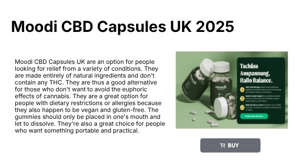 Moodi CBD Capsules UK are an option for people looking for relief from a variety of conditions. They are made entirely of natural ingredients and don't contain any THC. They are thus a good alternative for those who don't want to avoid the euphoric effects of cannabis. They are a great option for people with dietary restrictions or allergies because they also happen to be vegan and gluten-free. The gummies should only be placed in one's mouth and let to dissolve. They're also a great choice for people who want something portable and practical.