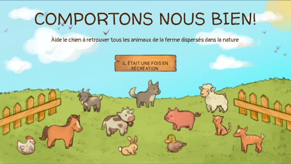 Oh non! Les animaux se sont échappés ! Aide nous à les retrouver en répondant aux questions Pendant la récréation Sais tu toujours les conséquences de ton comportement ?