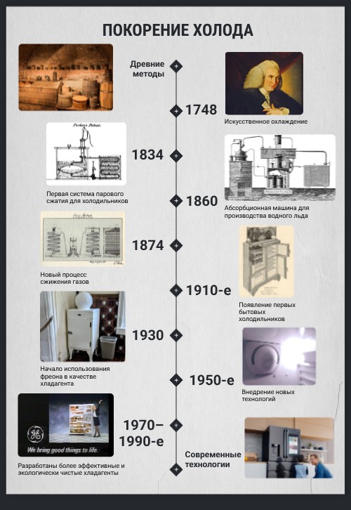 Начало использования фреона в качестве хладагента. До изобретения фреона в холодильниках использовался аммиак, некоторые другие соединения, даже этиловый спирт.