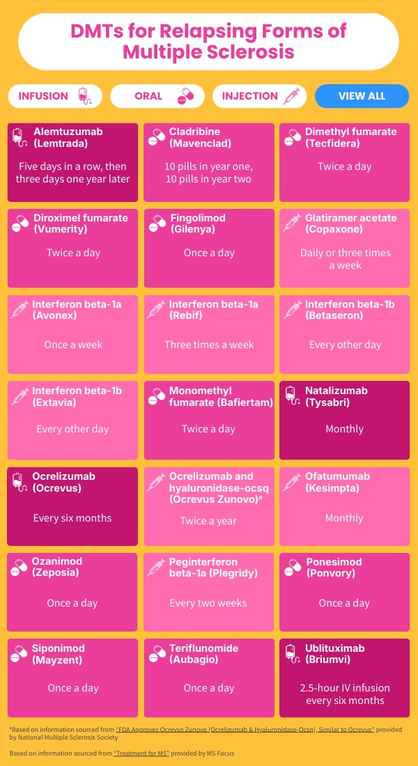 aBased on information sourced from “FDA Approves Ocrevus Zunovo (Ocrelizumab & Hyaluronidase-Ocsq), Similar to Ocrevus” provided by National Multiple Sclerosis SocietyBased on information sourced from “Treatment for MS” provided by MS Focus