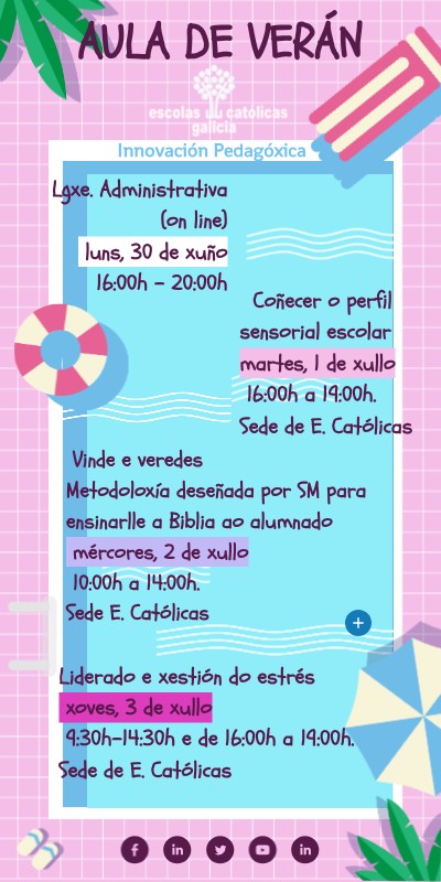 xoves, 3 de xullo 9:30h-14:30h e de 16:00h a 19:00h. Sede de E. Católicas