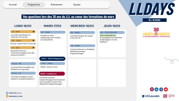 Les LLDays constituent un espace dédié au partage de savoirs et d’expériences entre collègues enseignant·es. Toute l’équipe est ravie de vous accueillir et vous souhaite un programme riche et stimulant.