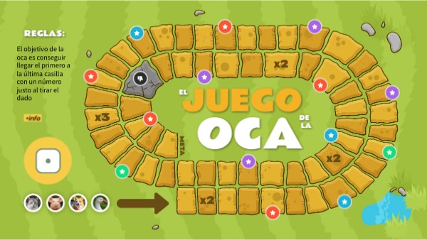 El objetivo de la oca es conseguir llegar el primero a la última casilla con un número justo al tirar el dado