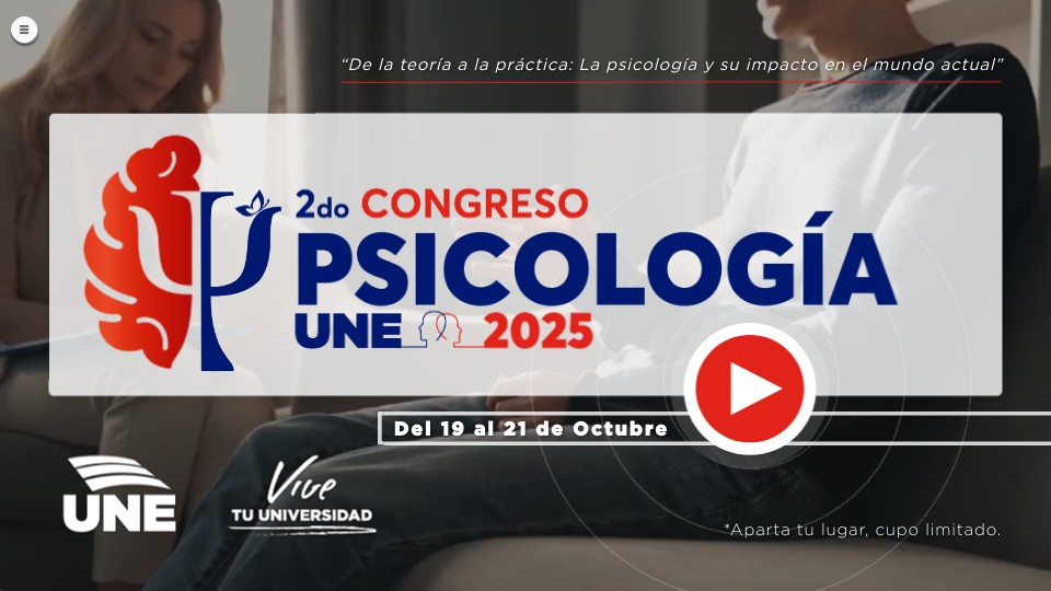 ¿Qué lugar ocupa la psicología en el mundo que habitamos? En el segundo congreso Psicología UNE 2025, te invitamos a descubrir cómo las distintas ramas de la psicología están transformando realidades, retando paradigmas y abriendo nuevas posibilidades de intervención. A través de conferencias magistrales, talleres prácticos y foros de diálogo con especialistas, exploraremos temas que van desde la psicología social y comunitaria, hasta la psicología del deporte, forense, organizacional, de la salud y la tanatología, incluyendo el fascinante vínculo entre la neuropsicología y la inteligencia artificial. Este congreso no solo busca ampliar tu conocimiento, sino inspirarte a pensar, cuestionar y actuar. Porque la psicología no se queda en el aula: vive en cada contexto, cada persona, cada historia. Da el paso de la teoría a la práctica y descubre tu impacto como futuro profesional de la salud mental.