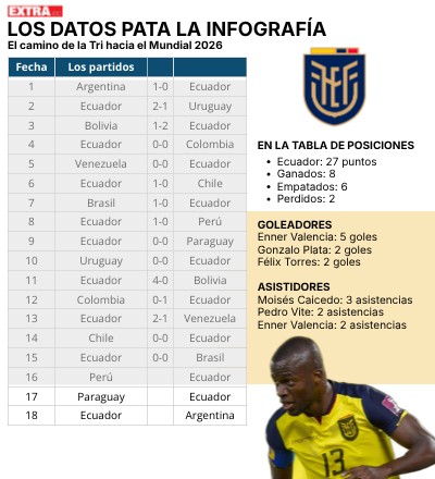 GOLEADORES Enner Valencia: 5 goles Gonzalo Plata: 2 goles Félix Torres: 2 goles ASISTIDORES Moisés Caicedo: 3 asistencias Pedro Vite: 2 asistencias Enner Valencia: 2 asistencias