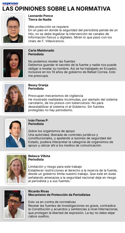 Ricardo Rivas Mecanismo de Protección de Periodistas Esto va en contra de normativas Revelar las fuentes de investigaciones es grave, contradice la Constitución y acuerdos y sentencias a nivel internacional, que protegen la libertad de expresión. La ley no debe dejar cabos sueltos.