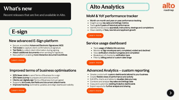 Alto is the last CRM you’ll ever need. We don’t just compete. We set the standard. Continuous improvements — The UK’s largest user base means more investment in Research & Development, Integrations and continuous product improvements. Everything you need in one place — Sales & lettings progression, client accounting, reporting — all in one. Future-focused — Proven AI and automation that saves 40+ hours per user each month, with innovation shaped by agents.