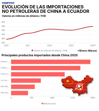Evolución de las importaciones no petroleras de China a Ecuador