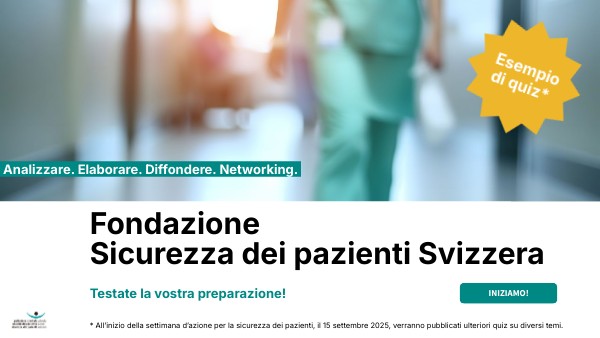 Ulteriori quiz saranno disponibili all’inizio della settimana d’azione il 15 settembre 2025 al link:www.patientensicherheit.ch/quiz-settimana-dazione
