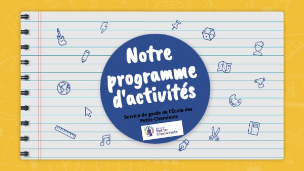 Programme d’activités | Ministère de l'Éducation. (s. d.). https://www.education.gouv.qc.ca/parents-et-tuteurs/services-de-garde-en-milieu-scolaire/programmedactivites#:~:text=Les%20activit%C3%A9s%20des%20services%20de,la%20p%C3%A9riode%20de%20travaux%20scolaires. Association québécoise de la garde scolaire : https://gardescolaire.org/ Vous pouvez également consulter le document PDF sur le site de l’école.