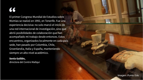 El primer Congreso Mundial de Estudios sobre Momias se realizó en 1992, en Tenerife. Fue una experiencia decisiva: no solo marcó el inicio de una red internacional de investigación, sino que abrió posibilidades de colaboración que han acompañado mi trabajo desde entonces. Estos encuentros, organizados localmente en cada país sede, han pasado por Colombia, Chile, Groenlandia, Italia y España, manteniendo siempre un alto nivel académico.