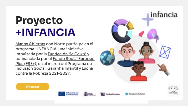 Manos Abiertas con Norte participa en el programa +INFANCIA, una iniciativa impulsada por la Fundación “la Caixa” y cofinanciada por el Fondo Social Europeo Plus (FSE+), en el marco del Programa de Inclusión Social, Garantía Infantil y Lucha contra la Pobreza 2021-2027.