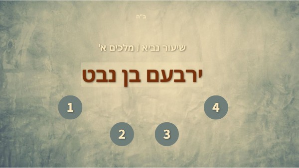 בפרק י"א למדנו שה' כועס על שלמה ומחליט לצמם את ממלכתו ,לממלכה קטנה :ומעתה מתחילה תקופה חדשה .ממלכת ישראל וממלכת יהודה מתפצלות על ממלכת יהודה (שבטים יהודה ובנימין) .מולך רחבעם בנו של שלמה המלך על ממלכת ישראל (עשרת השבטים הנוספים) .מולך ירבעם בן נבט :על דמותו של ירבעם נלמד בקטע הבא