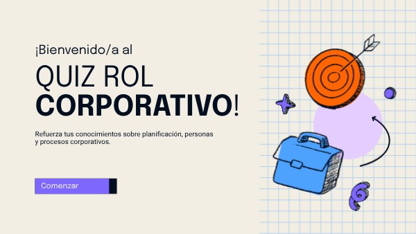 Pon a prueba los conocimientos de tu audiencia con este quiz sobre el rol corporativo. Revisa conceptos clave de estrategia, finanzas, recursos humanos y planificación. Ideal para formación interna, onboarding o repaso de competencias esenciales dentro de una organización.