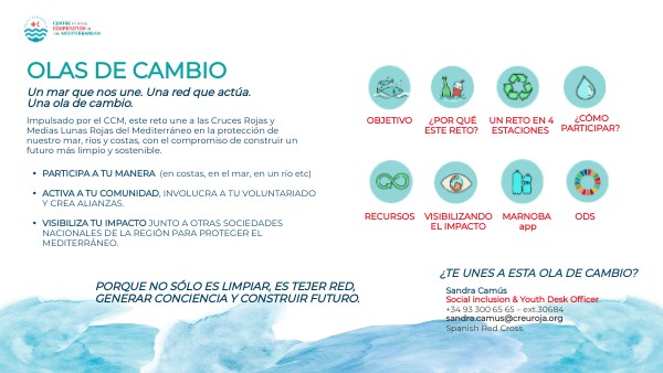 Un mar que nos une. Una red que actúa. Una ola de cambio. #olasdecambio - damos visibilidad al reto. - sensibilizamos a más personas - unificamos la voz de todas las Sociedades Nacionales de la región Mediterránea.