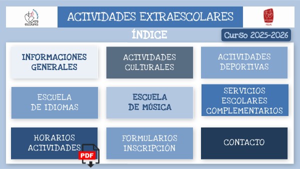 10/9/25: Comienzan llamamientos actividades deportivas. 1/10/25: Comienzan todas las actividades extraescolares.