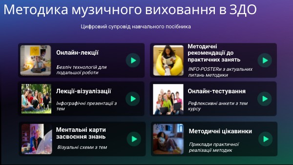 Короткі, але потужні ідеї, поради і лайфхаки для твоєї педагогічної практики: оригінальні ігри та вправи для розвитку музичного слуху, ритму, творчості; нестандартні підходи до проведення свят та розваг; прості техніки для формування вольових якостей через гру; корисні ресурси, інструменти та прийоми візуалізації; методики для роботи з різними віковими групами в ЗДО