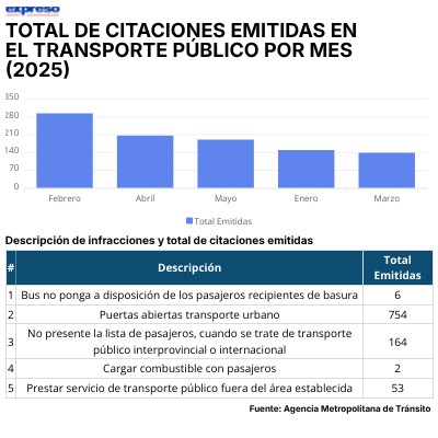 Total de citaciones emitidas en el transporte público por mes (2025)