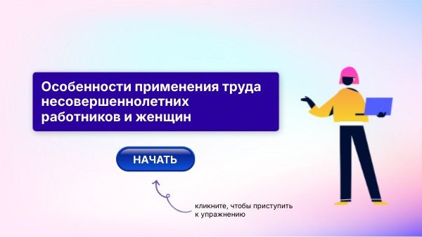 Для выполнения этого задания необходимо изучить Постановление Правительства РФ от 25.02.2000 №163 «Об утверждении перечня тяжелых работ и работ с вредными или опасными условиями труда, при выполнении которых запрещается применение труда лиц моложе восемнадцати лет» и Приказ Минтруда России от 18.07.2019 №512н «Об утверждении перечня производств, работ и должностей с вредными и (или) опасными условиями труда, на которых ограничивается применение труда женщин».